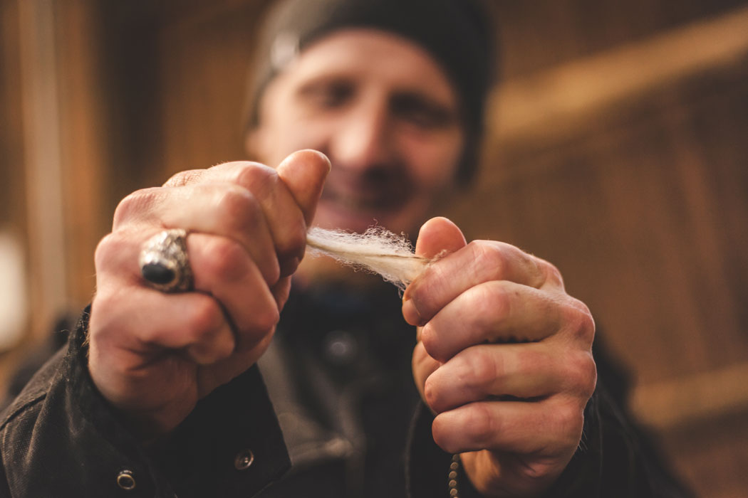 Jedoch lohnt es für die Schäfer heutzutage nicht mehr, die Wolle ihrer Schafe zu verkaufen. Die Preise, die ein »bayerisches Kilo Wolle« kostet, sind international nicht wettbewerbsfähig. Also geben viele Schäfer ihr aufwändiges Handwerk auf oder halten die Schafe nur mehr für die Schlachtung. Verrückt, finden wir. Wir wollen das ändern und haben die Schäfer einfach gefragt, was sie denn verdienen müssten, um uns bayerische Wolle zu produzieren. Das ist für uns nicht nur ein großer Schritt in die Zukunft, sondern ein noch größerer Schritt in Richtung Transparenz und faire, nachhaltige Produktion. Durch die Zusammenarbeit mit lokalen Schäfer können wir jeden einzelnen Produktionsschritt dokumentieren und direkt nachvollziehen, wie die Schafe gehalten werden und welche Menschen dahinter stehen. Wir wollen lokale und kleine Schäfer fördern und Menschen, die sich leidenschaftlich um unsere Heimatpflege kümmern und das Wohl der Tiere in den Mittelpunkt stellen.